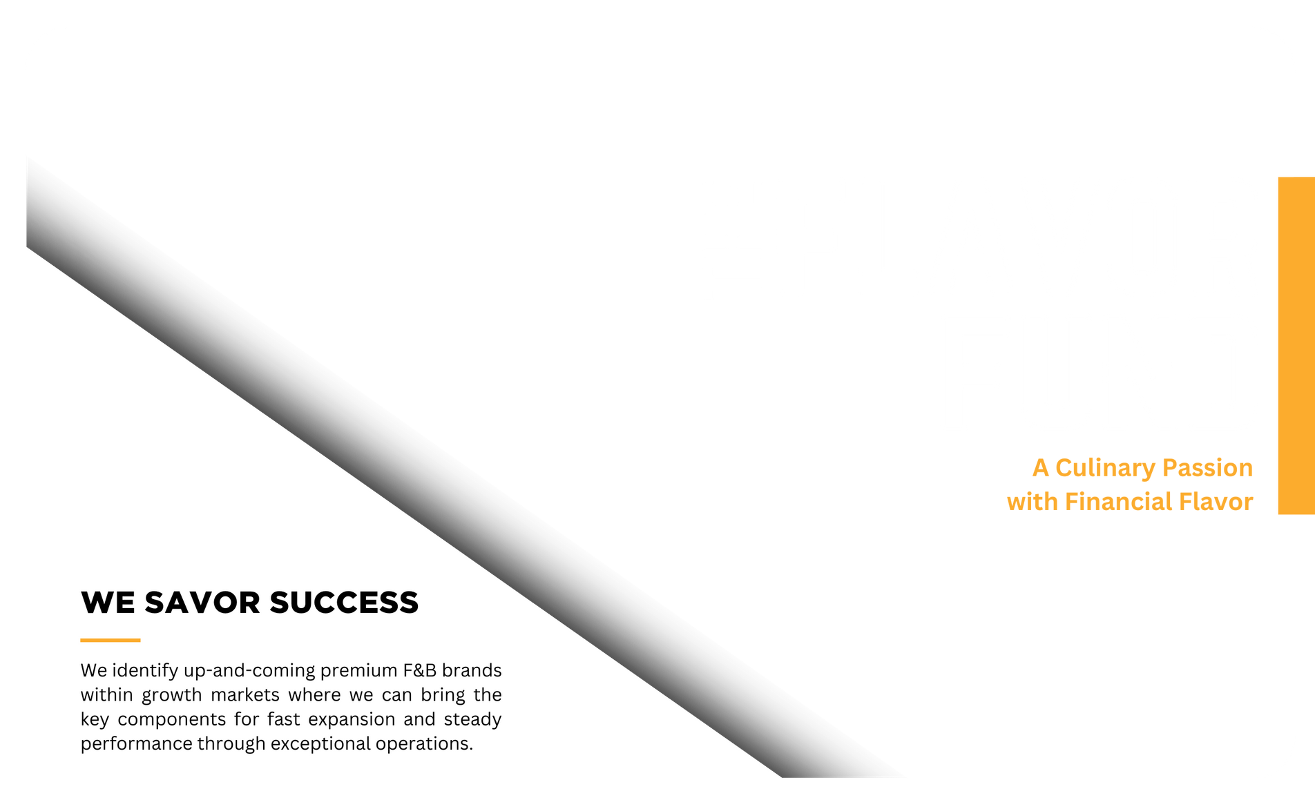 A team of seasoned experts with a wealth of experience investing in the dynamic realms of restaurants, food, and beverage. Armed with substantial resources and industry acumen, we dedicate ourselves to cultivating and advancing brands within these sectors. Our proficiency lies not only in identifying promising investment opportunities but also in leveraging our resources to develop and optimize operations, thereby enhancing brand value. We are committed to fostering growth, innovation, and efficiency, making impactful contributions that propel businesses to new heights in this competitive and evolving market.